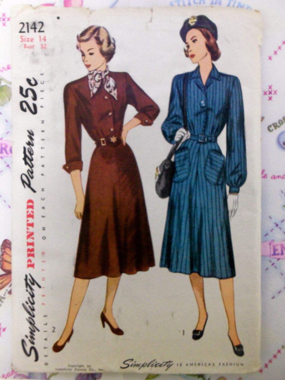 Fab Vintage 1947 Simplicity 2142 Dress Pattern Sz 14 Bust 32 Etsy